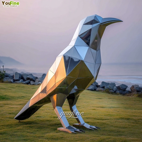 거울 광택 야외 스테인레스 스틸 금속 까마귀 조각